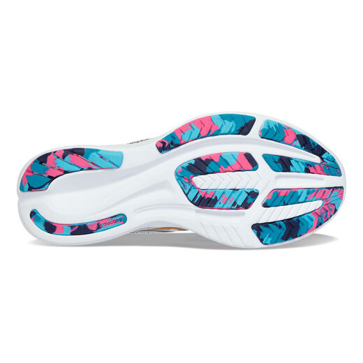 Trotz einiger großen Neuerungen bleibt Sauconys Ride 15 für Damen seiner Laufphilosophie treu und wird auf diese Weise das Herz seiner Fans höherschlagen lassen. Die PWRRUN-Dämpfung wurde ausgebaut, hat aber, im Gegensatz zu dem Vorgängermodell, einiges an Gewicht verloren. Durch einen tieferen Sitz des Fußes in der Mittelsohle hat man einen weitaus sichereren Stand im Schuh, und auch die neue Rocker-Sohlenform, welche vorne und hinten auffällig nach oben gebogen ist, fällt sofort ins Auge. Diese sorgt für ein sanfteres Abrollen und insgesamt ein geschmeidigeres Laufgefühl. Ein toller Allrounder, der sich auf beinah allen Wegen zuhause fühlt.